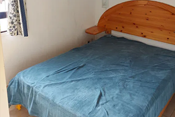 Ă lâĂ©tage, vous trouverez une chambre avec deux lits superposĂ©s, une chambre avec un grand lit, ainsi que la salle de bains.